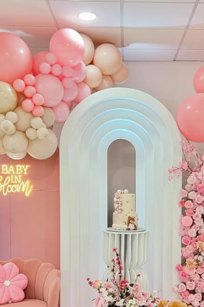 If you’re doing a balloon arch, keep the color palette tight-2-4 colors max-weave in real or faux florals for that “bloom” effect.