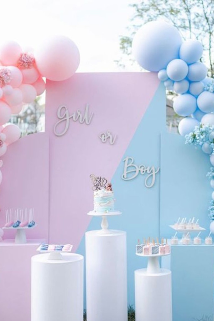 The layered pink and blue tones feel celebratory without screaming “gender reveal.”