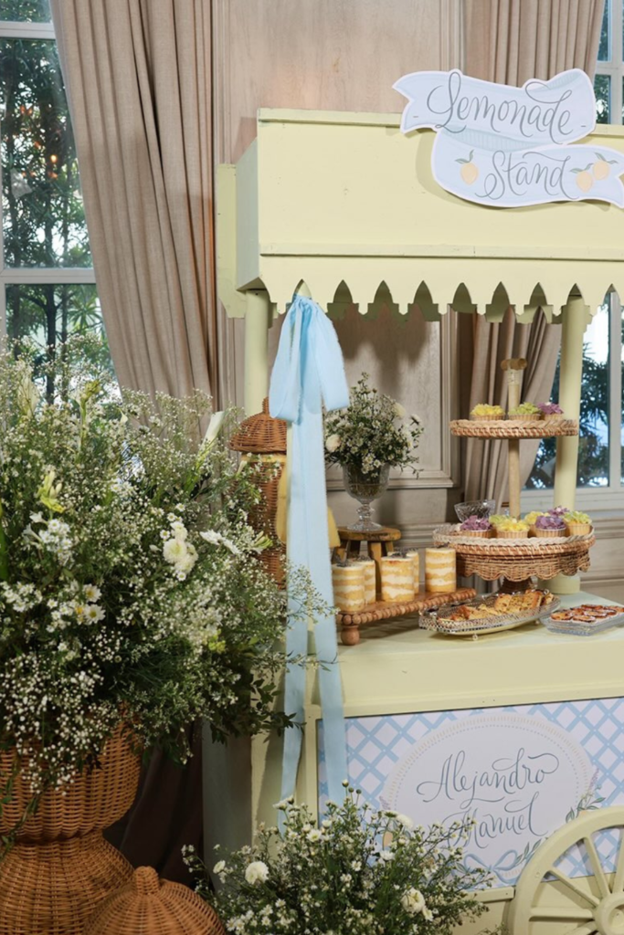 This lemonade cart instantly adds charm because it feels interactive and nostalgic.