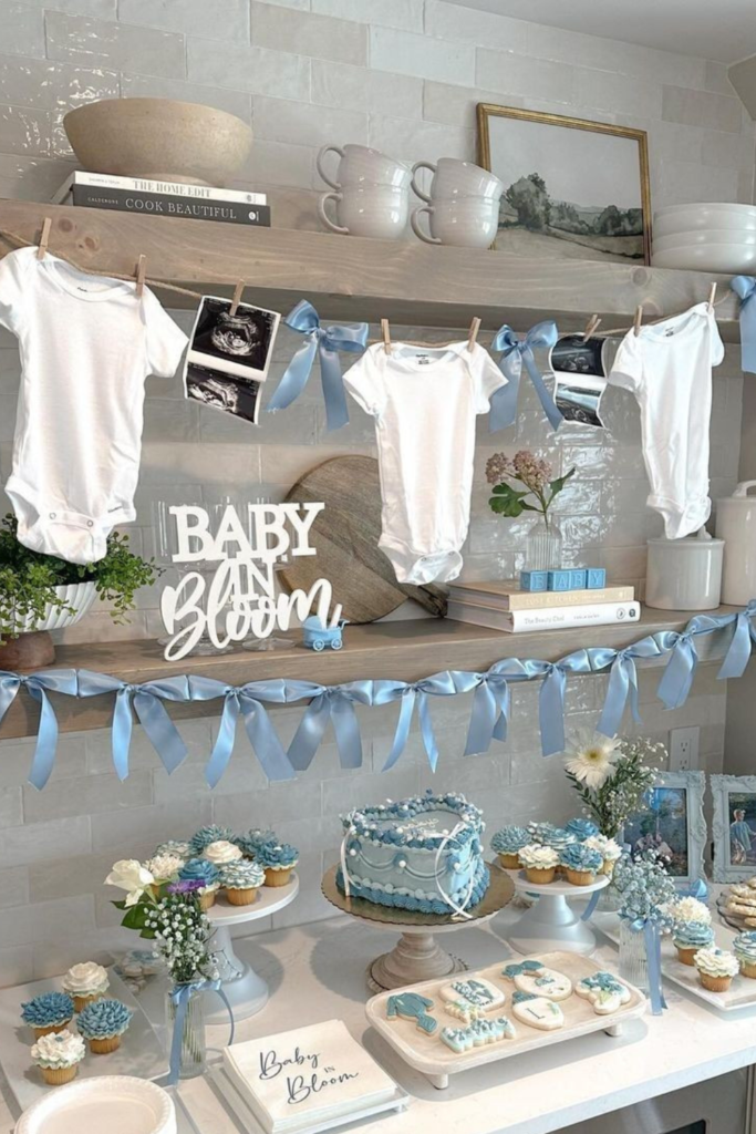 Coordinated ribbons and soft blue accents tie everything together without overcomplicating it.