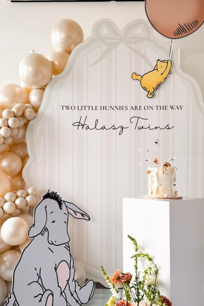 The neutral balloon arch keeps it modern, while the character cutouts make it personal and sweet without feeling childish.