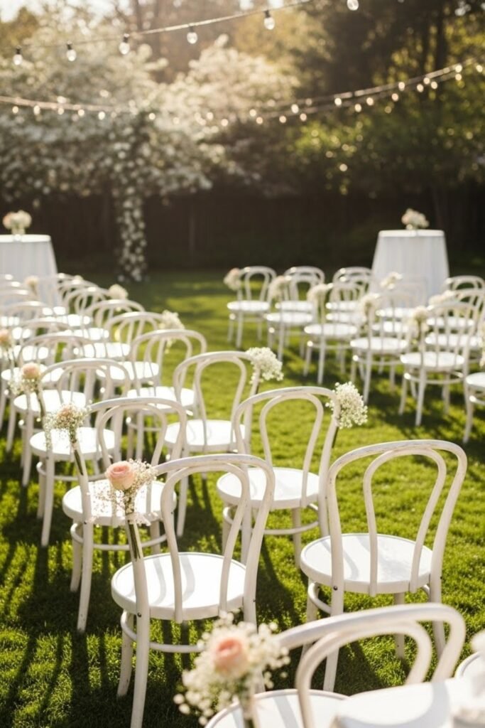 I arranged them loosely, and suddenly the ceremony felt warm, welcoming, and perfectly suited for a backyard setting.