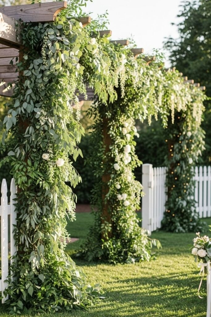 If you want a natural look, you have to hang greenery loosely from pergolas, fences, or temporary frames.
