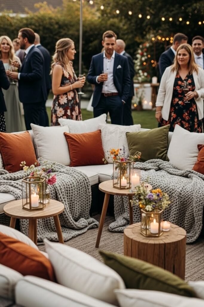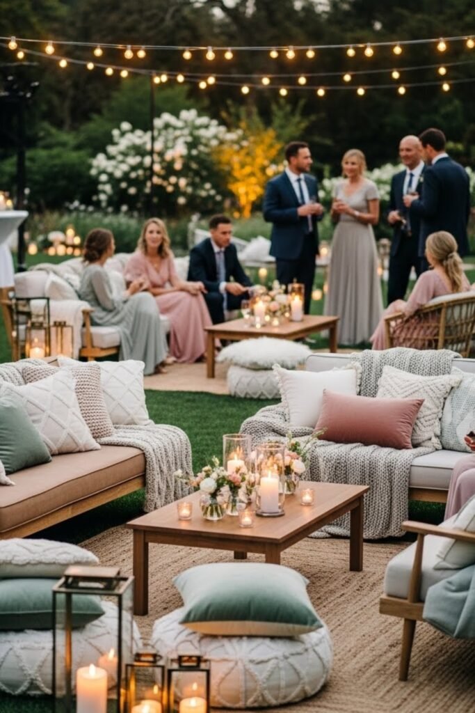 What guests lingered around most was a backyard lounge, because comfortable seating invited conversations beyond the dance floor all evening.