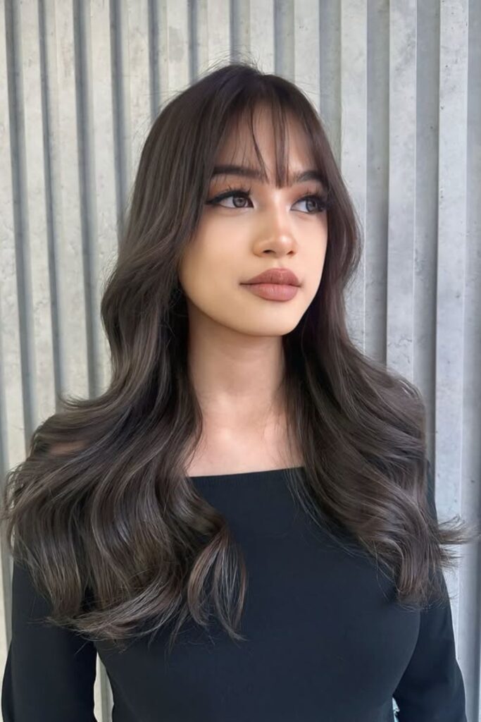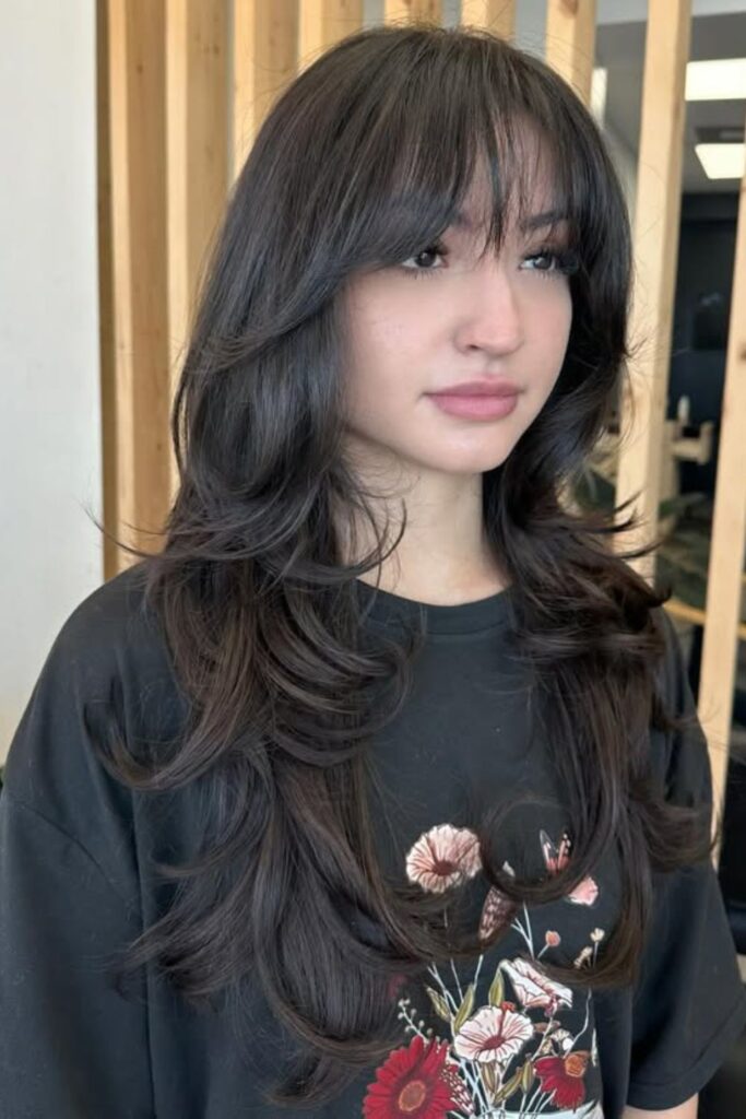 The full bangs brighten your face, while the textured layers keep the style airy and dynamic.