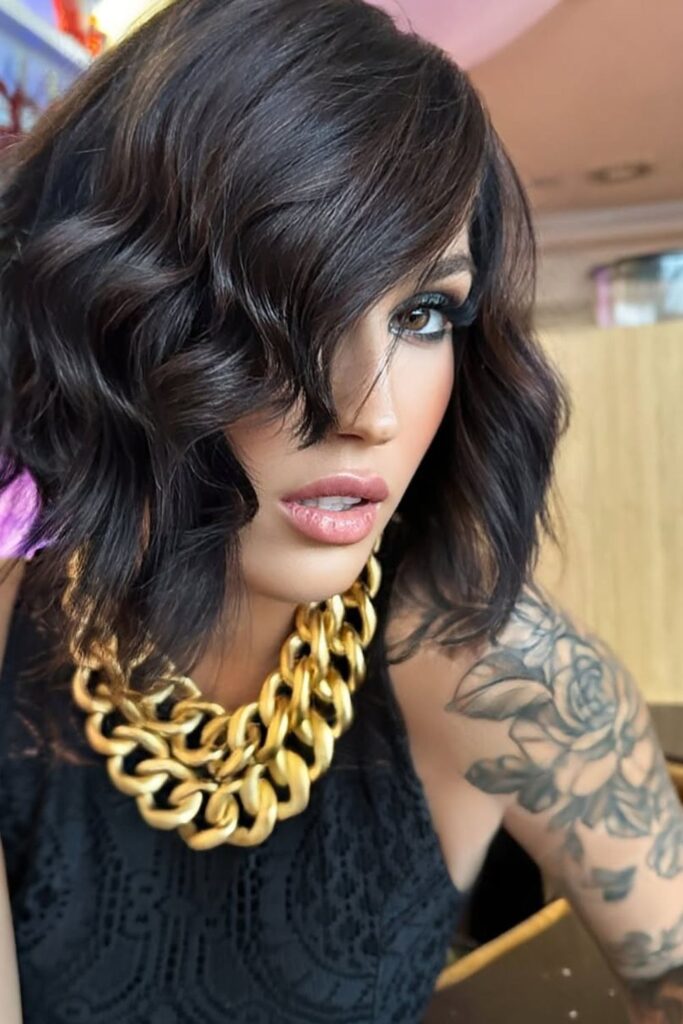 The uneven lengths add depth, while the waves provide a structured and voluminous effect.