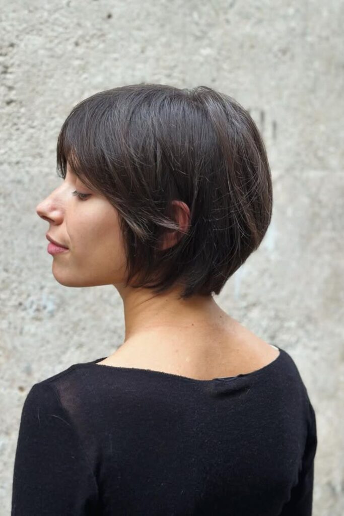This chic, cropped bob transforms thin hair with its sculpted, full-bodied silhouette.