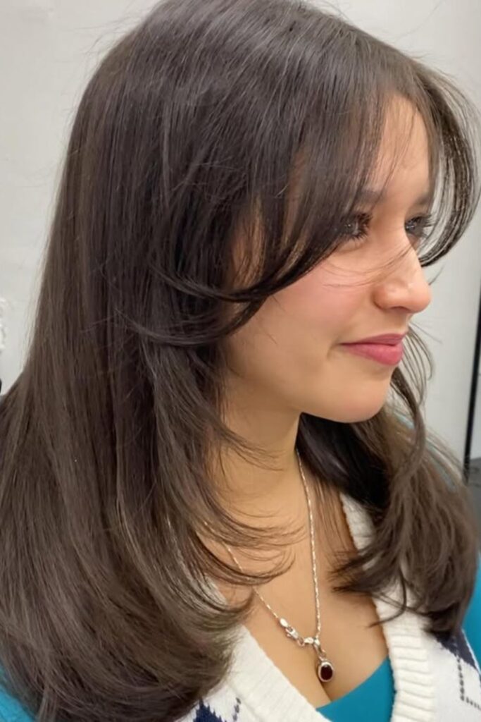 The delicate layers lightly frame your face, adding softness and movement without weighing it down.