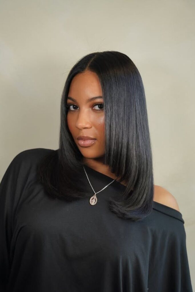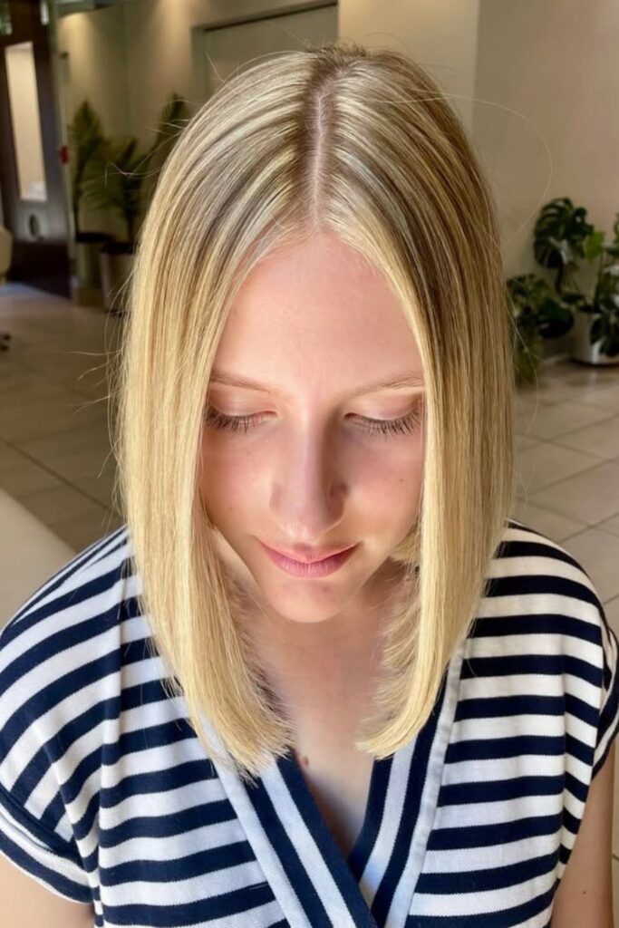 The sleek angled lob combines clean lines with sophistication.