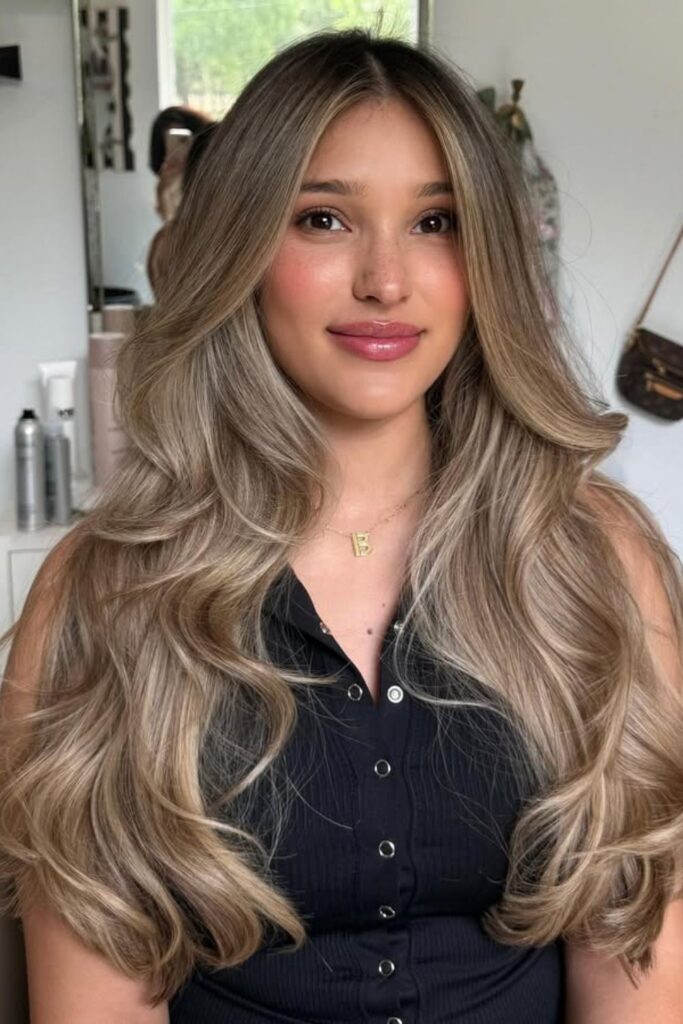 The soft waves add body, while the color contrast creates a thick, voluminous appearance.