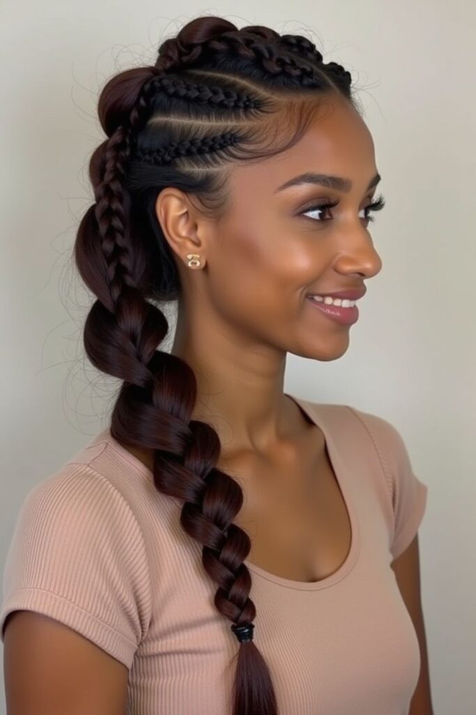 This look is versatile, allowing wearers to style it as a ponytail or let the braids flow freely.