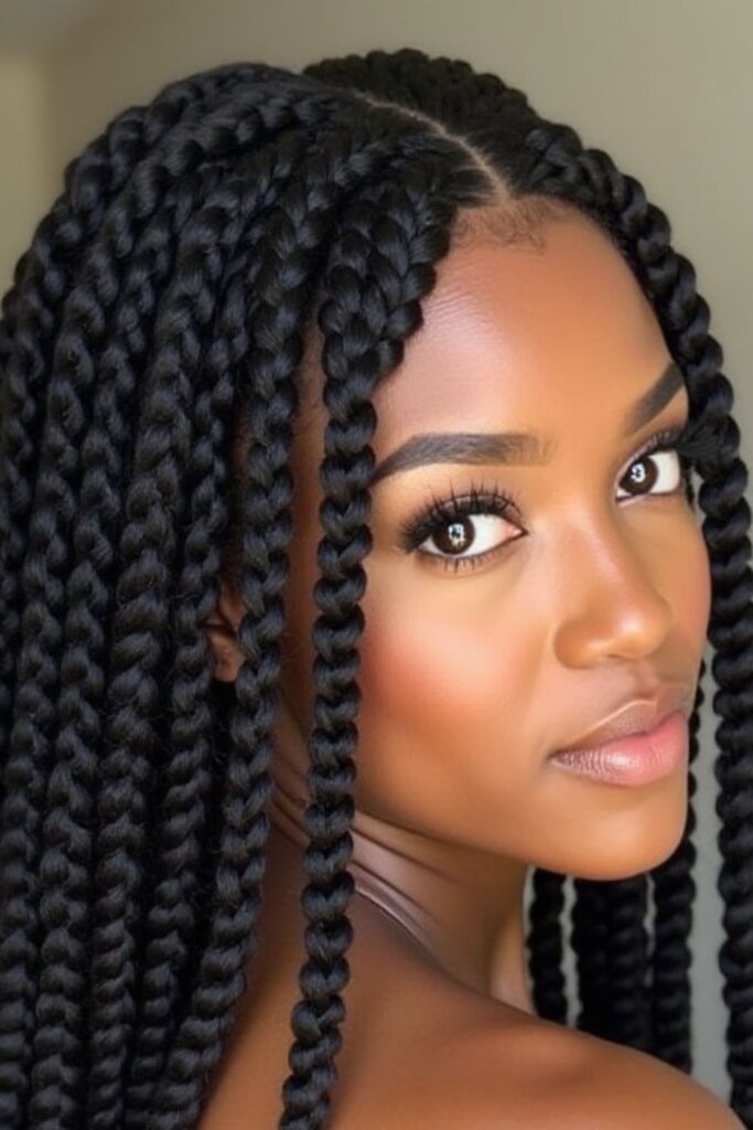 Classic twist braids are a timeless and sophisticated choice, featuring large, even braids with a sleek, polished finish.