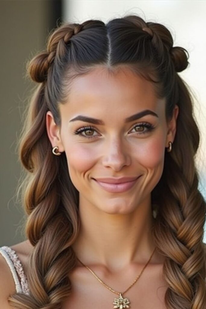 A braided crown bun blends precision and creativity, making it a standout style for 2025.