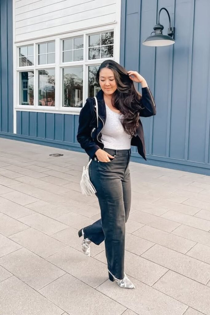 Want something that is both simple and strong and this style works with a cropped denim jacket and black jeans that match.