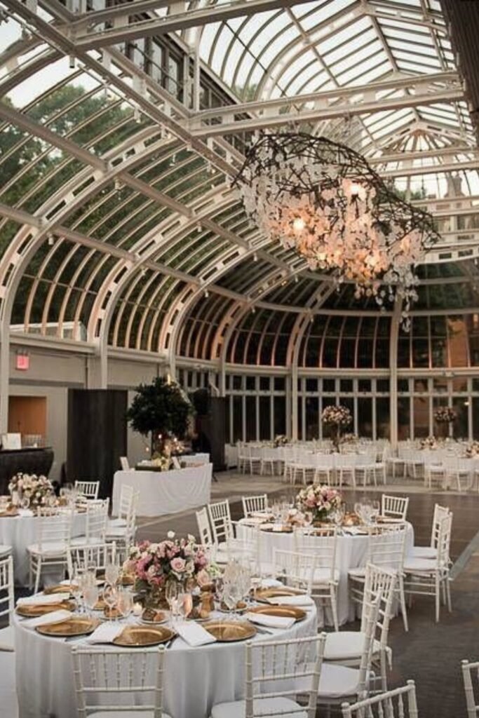 Greenhouse receptions combine structure and nature, giving full climate control while maintaining botanical views and abundant natural daylight.