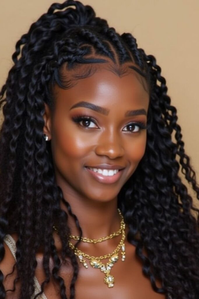 A perfect blend of African tradition and modern elegance, Fulani braids feature cornrows in the front and loose, flowing braids in the back.