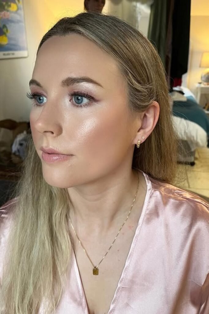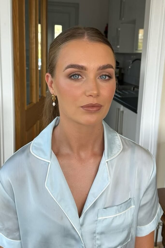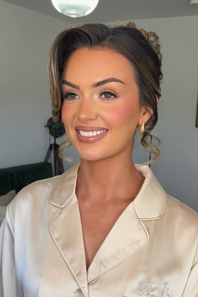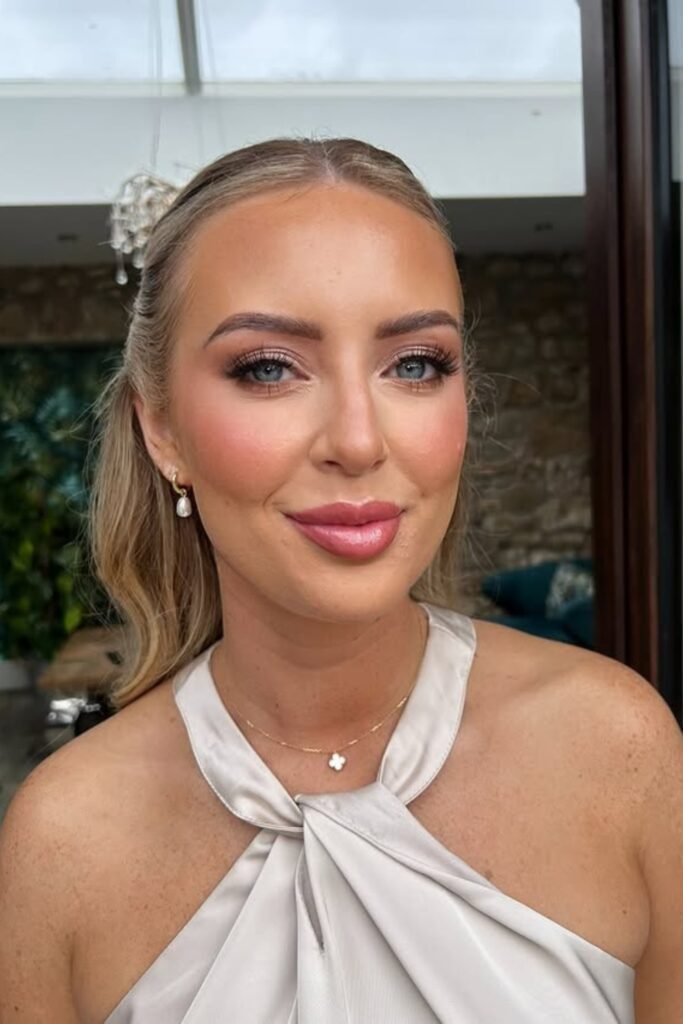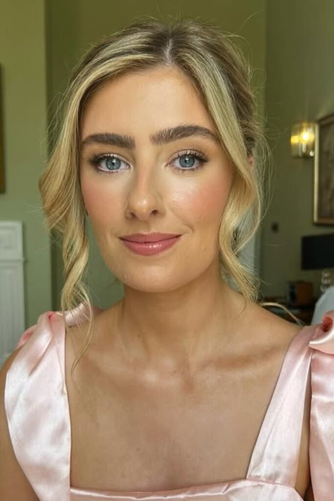 Skip heavy glam unless the bride asks for it, focus on fresh skin, defined eyes, and a lip color that complements the bridal party’s outfits.