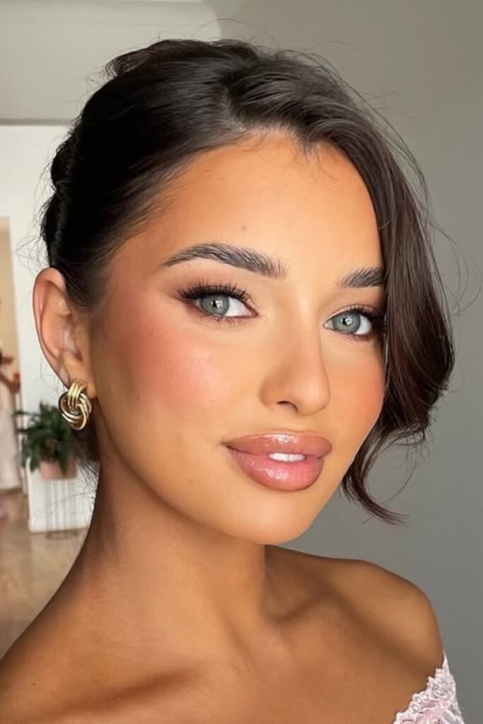 Soft Bronze Glow With Glossy Nude Lips