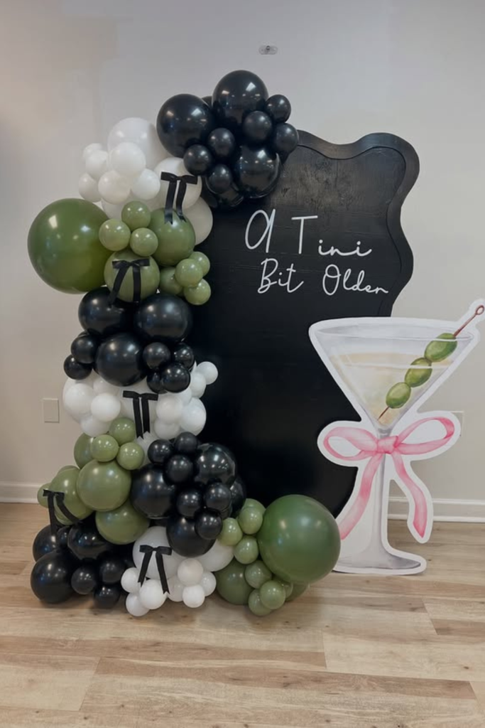 The sign sets the tone, the balloons frame the moment, and the table underneath becomes a natural gathering point.