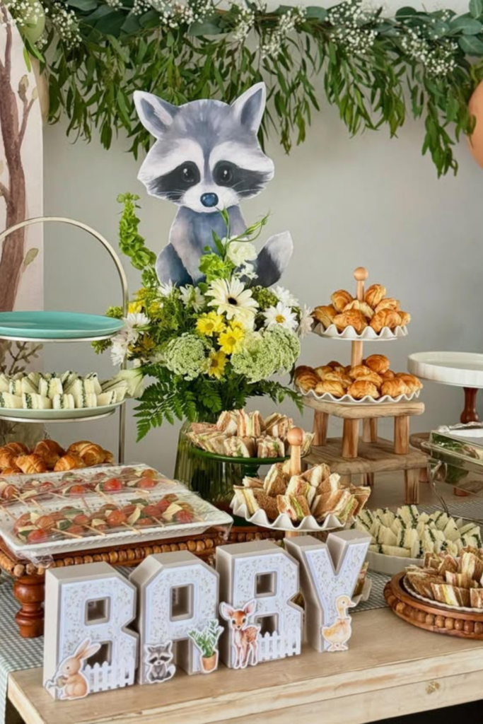 If you want a theme that feels playful but still brunch-appropriate, a soft woodland approach hits the sweet spot.