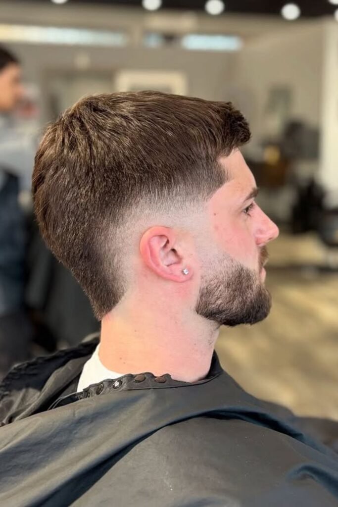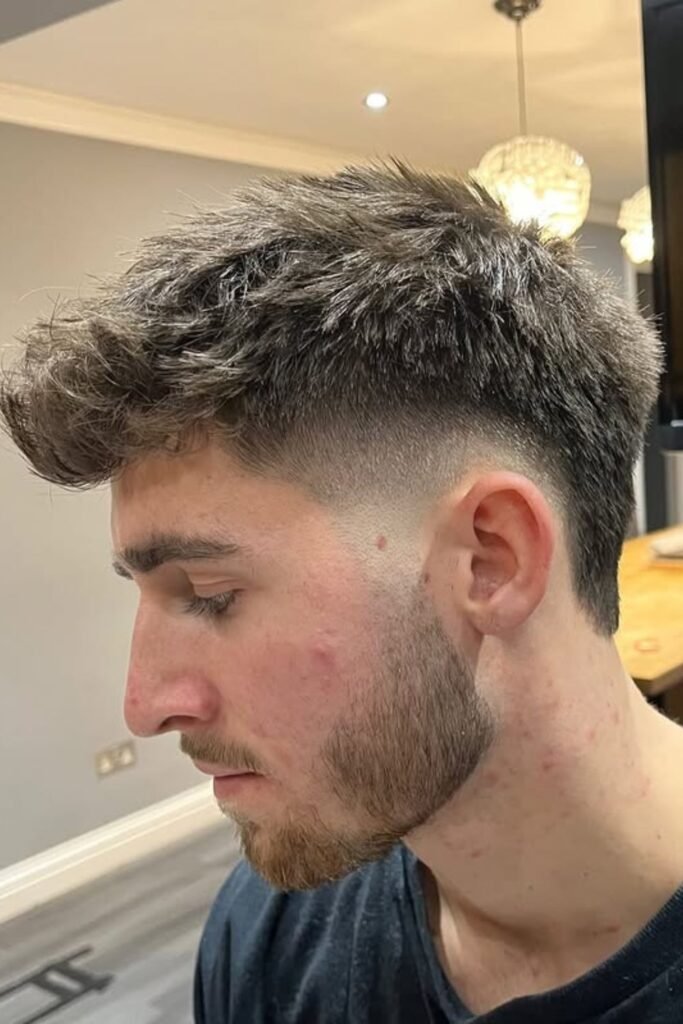 Ideal for those with defined jawlines and a preference for a more structured look. When you visit your barber, request a high burst fade.