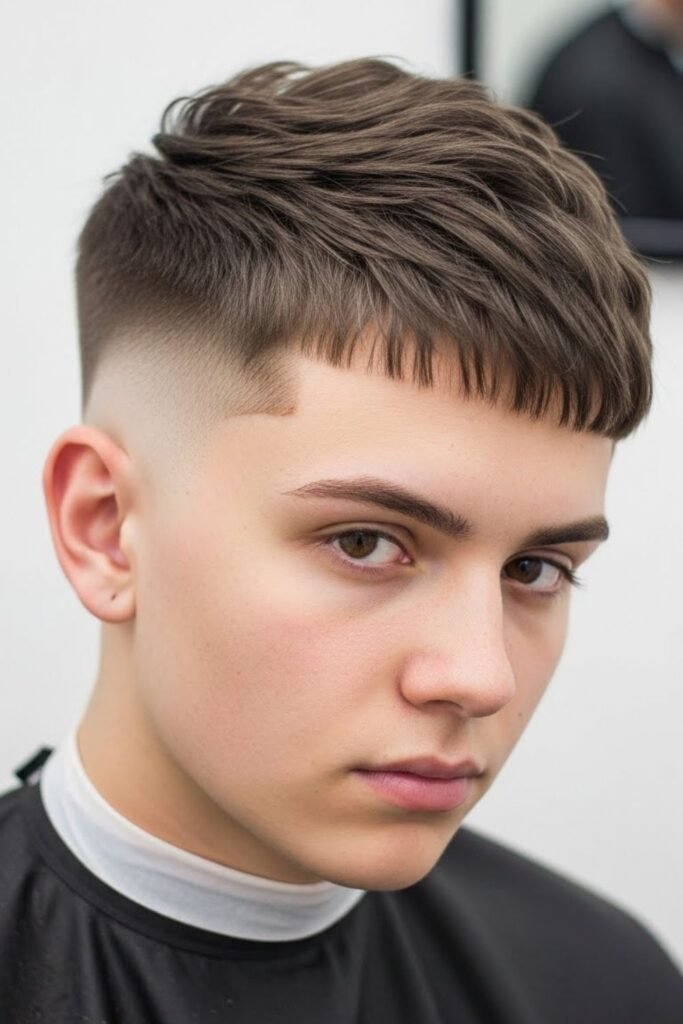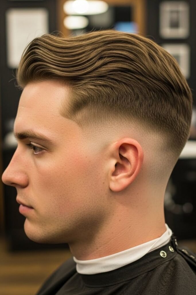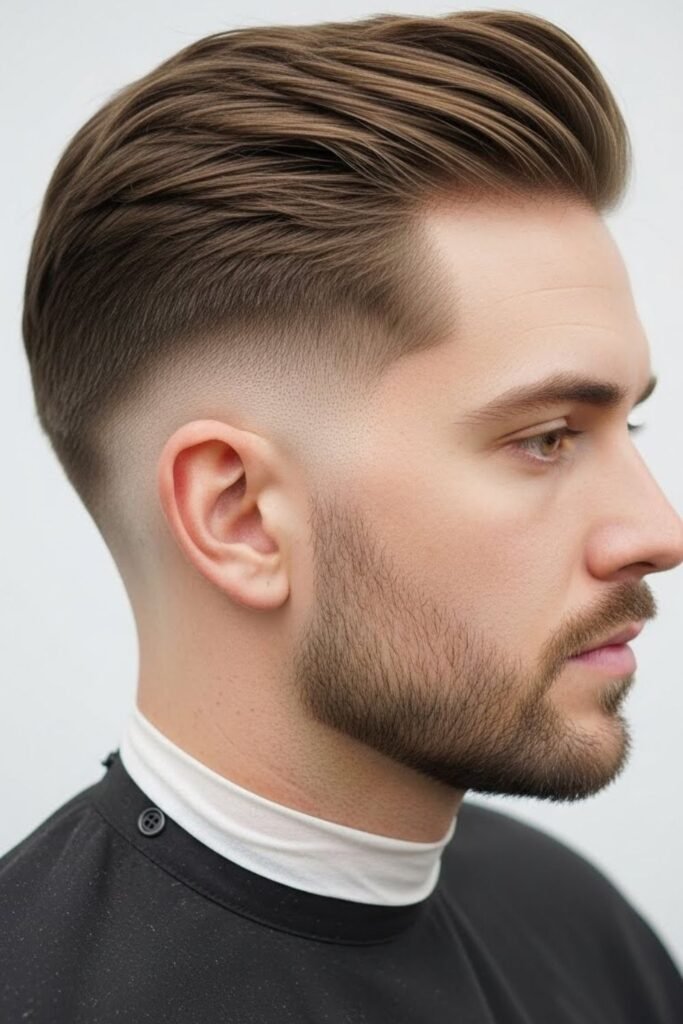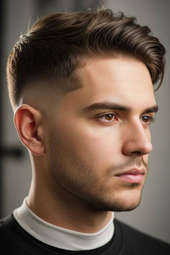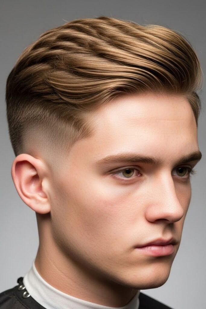 This approach is ideal if your face has a top heavy or angular appearance. Request a fade that remains subtle around the ears, while leaving more length at the front.
