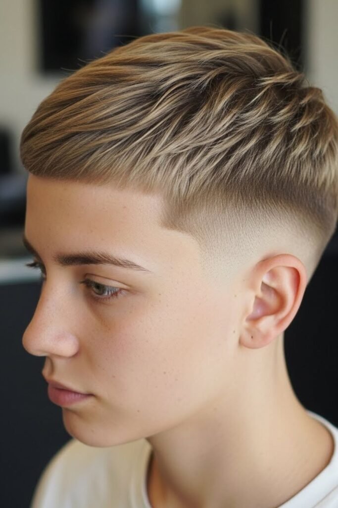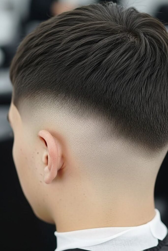 This concept appeals to those seeking a contemporary silhouette without sudden shifts. Request a subtle fade avoiding a stark contrast.