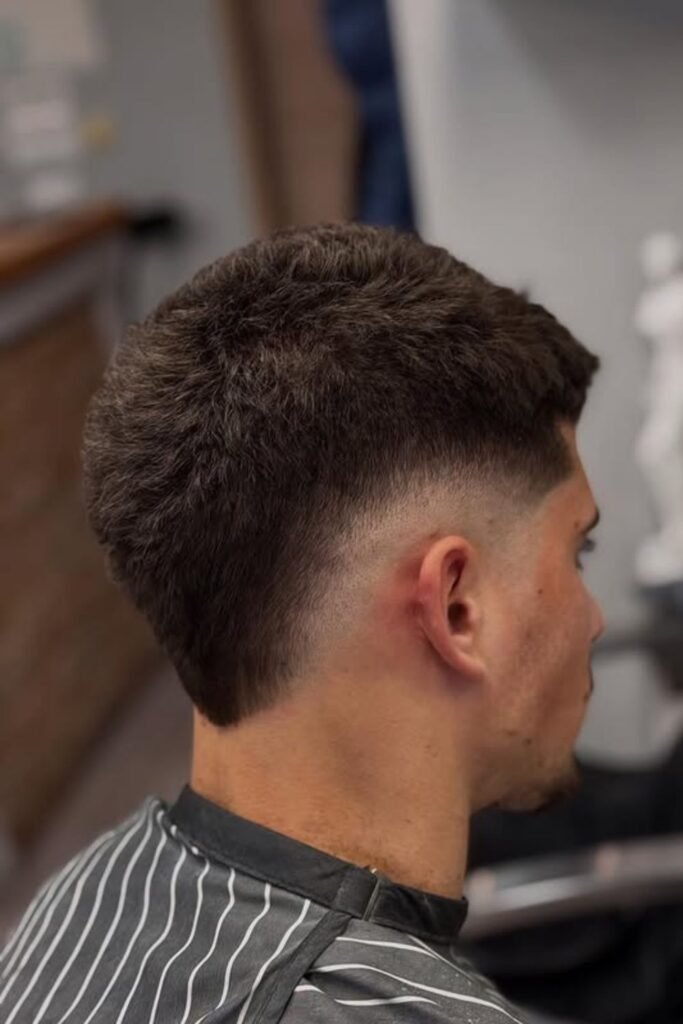 Perfect for those with thick hair that naturally has some lift. Ask your barber to leave the top a bit uneven and textured, and then go for a low, clean burst fade.