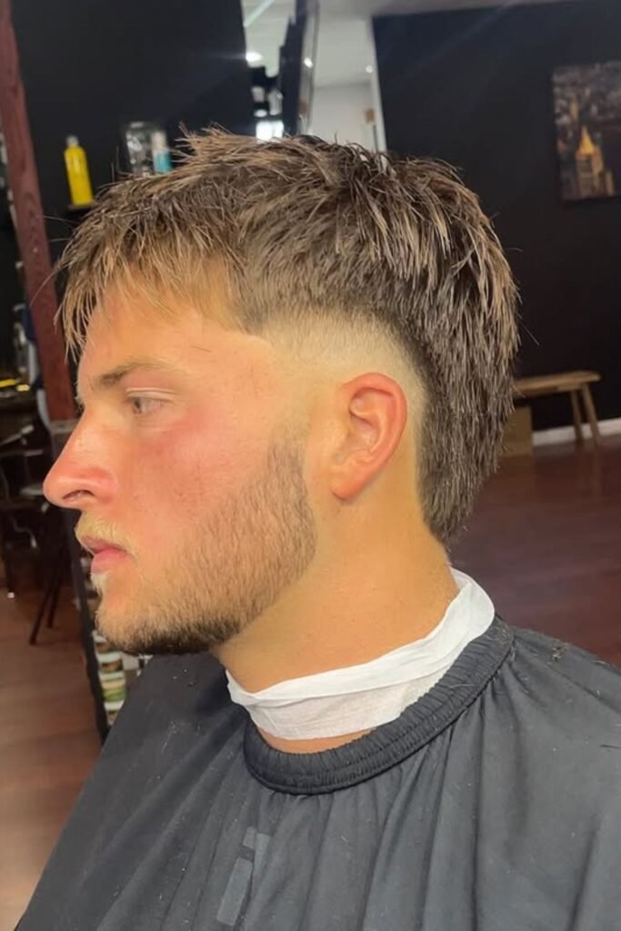 Controlled chaos makes this one work. The rough texture up top keeps the haircut relaxed, while the burst fade stops it from looking unkempt.