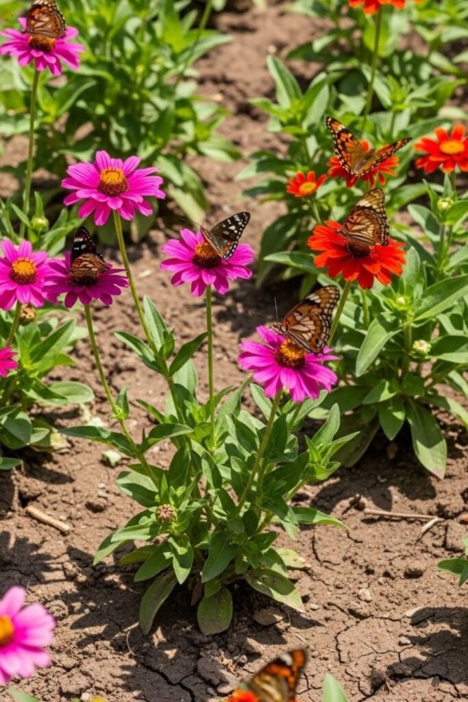 Chemicals push butterflies away faster than anything else, so I treat this garden as a no-spray zone. I let nature handle balance instead of trying to control every bug.