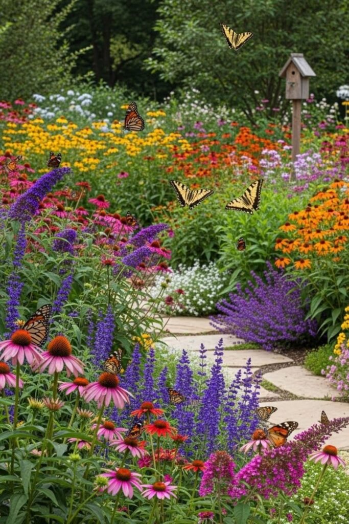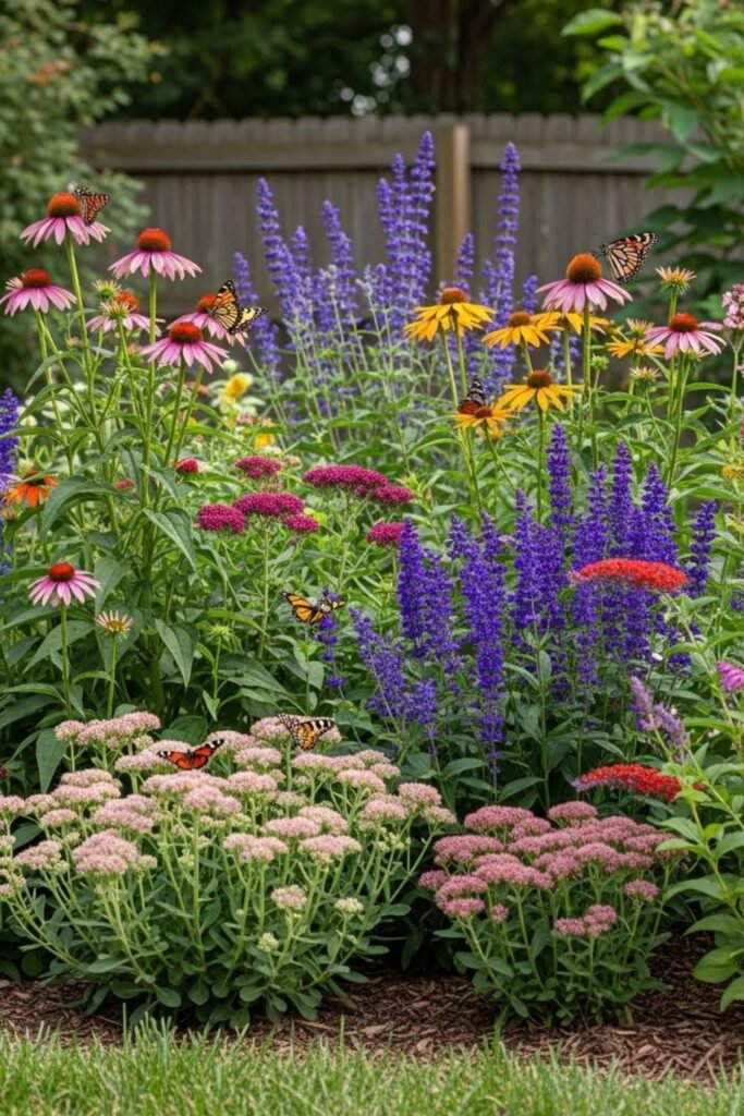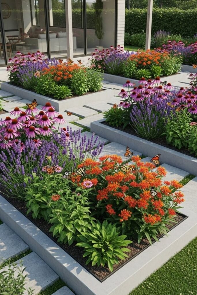 You can still attract butterflies without a wild look. When plants repeat in clean patterns, butterflies adapt easily.