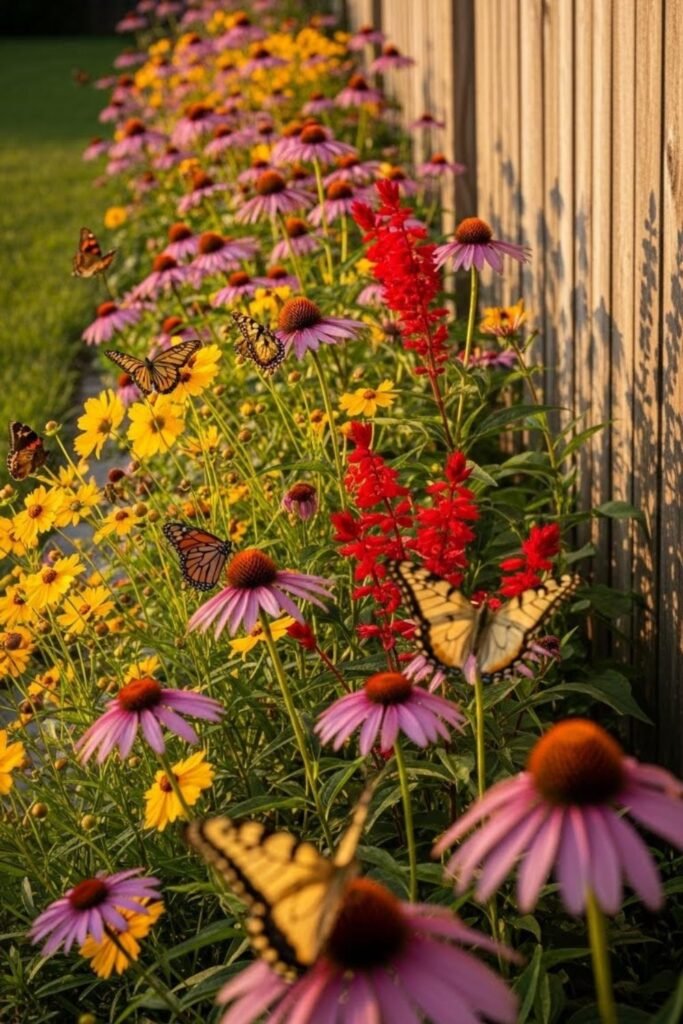 I line that strip with nectar plants butterflies can spot easily while flying. When you keep everything in one bright lane, butterflies feed longer instead of bouncing around.