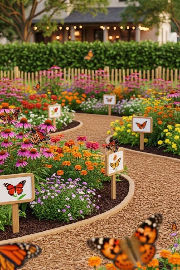 Kids get curious fast when butterflies feel close, so I design this space with learning in mind. I keep plants low so small hands can observe without touching.