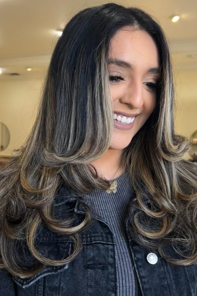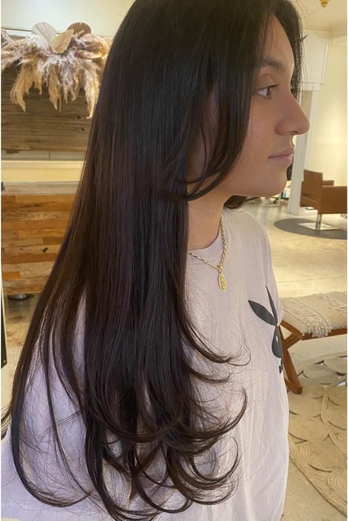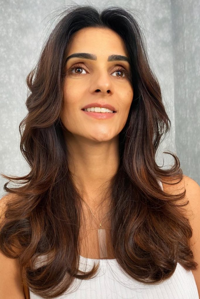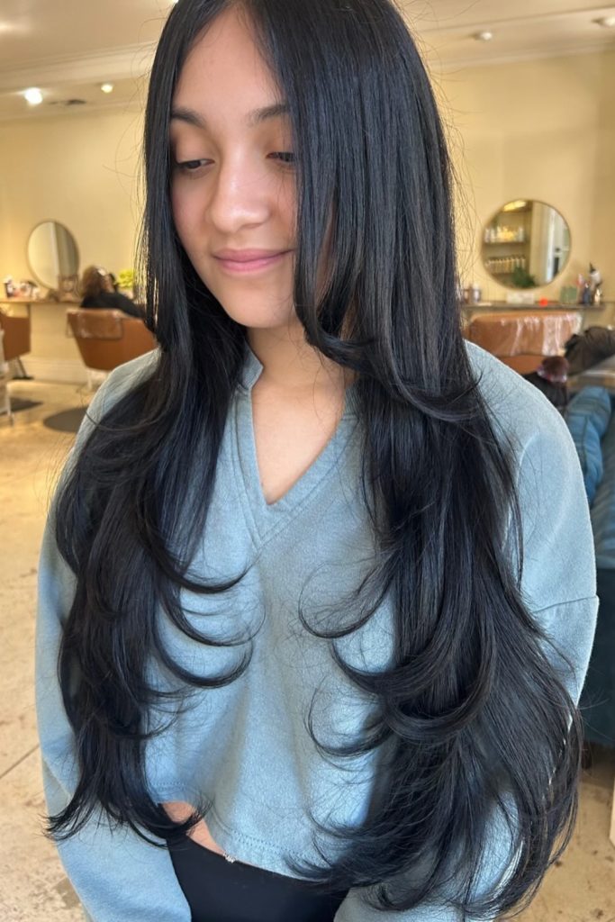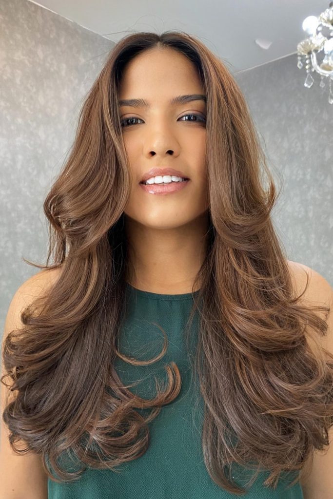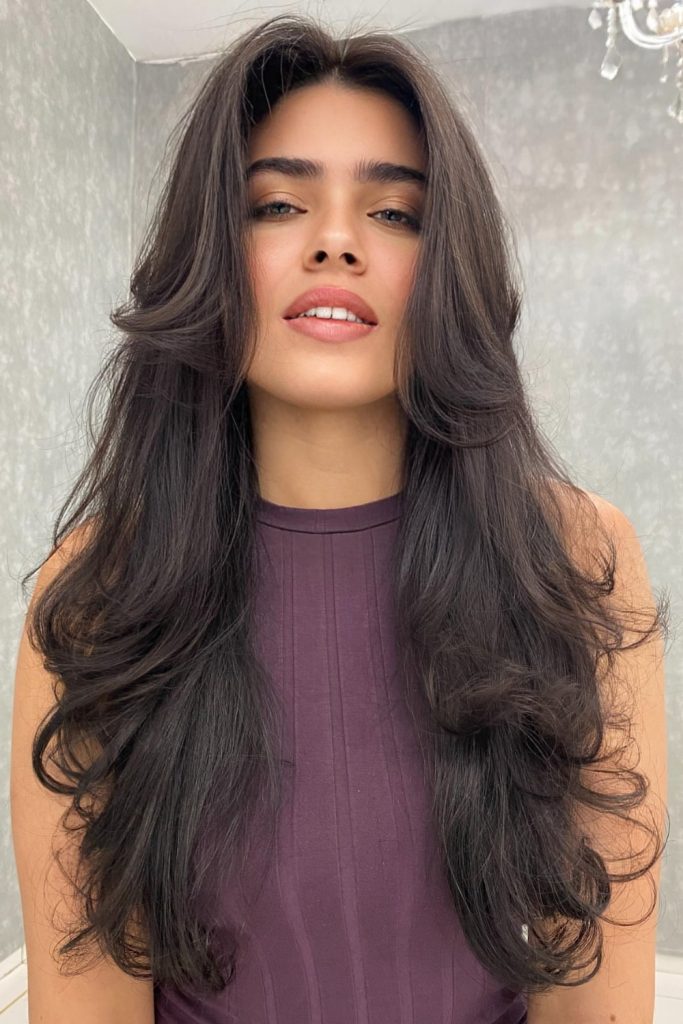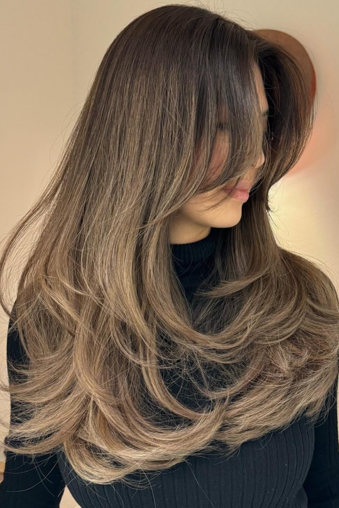 For this style, ask your stylist for long, gentle layers that blend effortlessly into your hair, ensuring a refined and smooth finish.