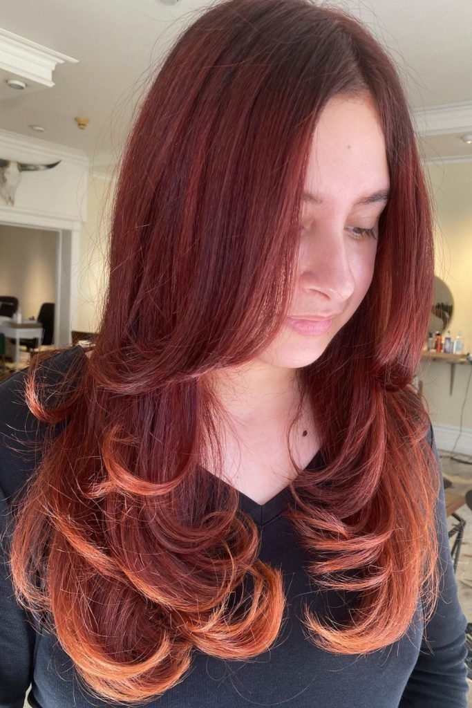 Auburn Radiance Layers bring a lively touch of auburn to the butterfly cut, infusing warmth and brightness.
