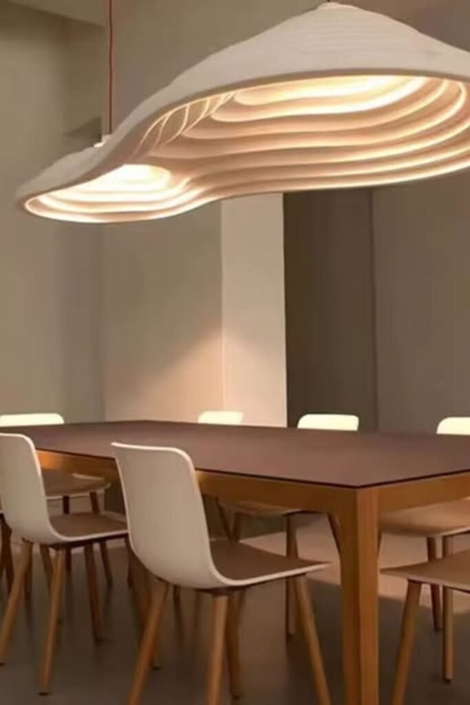 Dinner feels different under a sculpted light like this. The layered, organic shape stretches across the table and creates a soft glow that feels intentional, not ordinary.