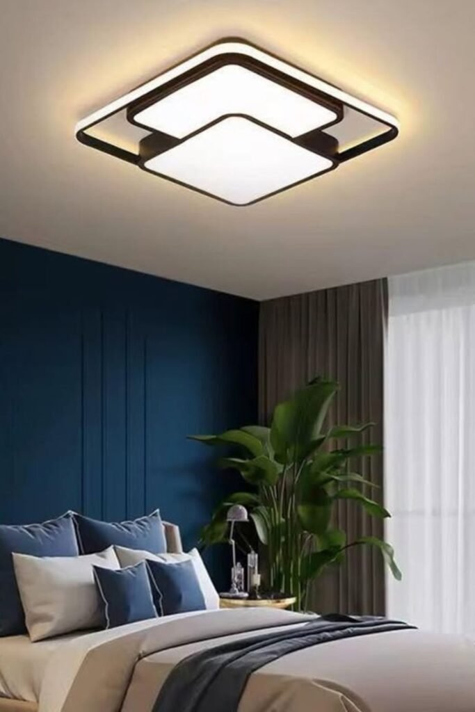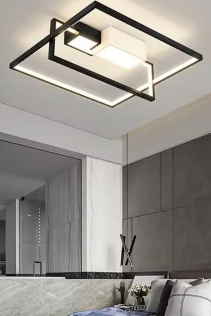 Sharp lines instantly make a room feel modern. A square frame ceiling light like this adds structure without dropping too low, which makes it perfect for bedrooms, entryways, or compact living.