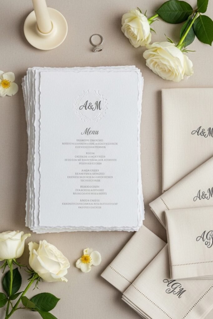 Start by choosing simple fonts and quality paper so names and wording look refined, timeless, and easy to read throughout your wedding stationery.