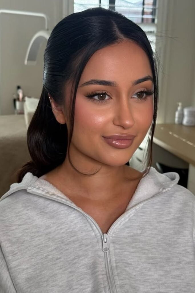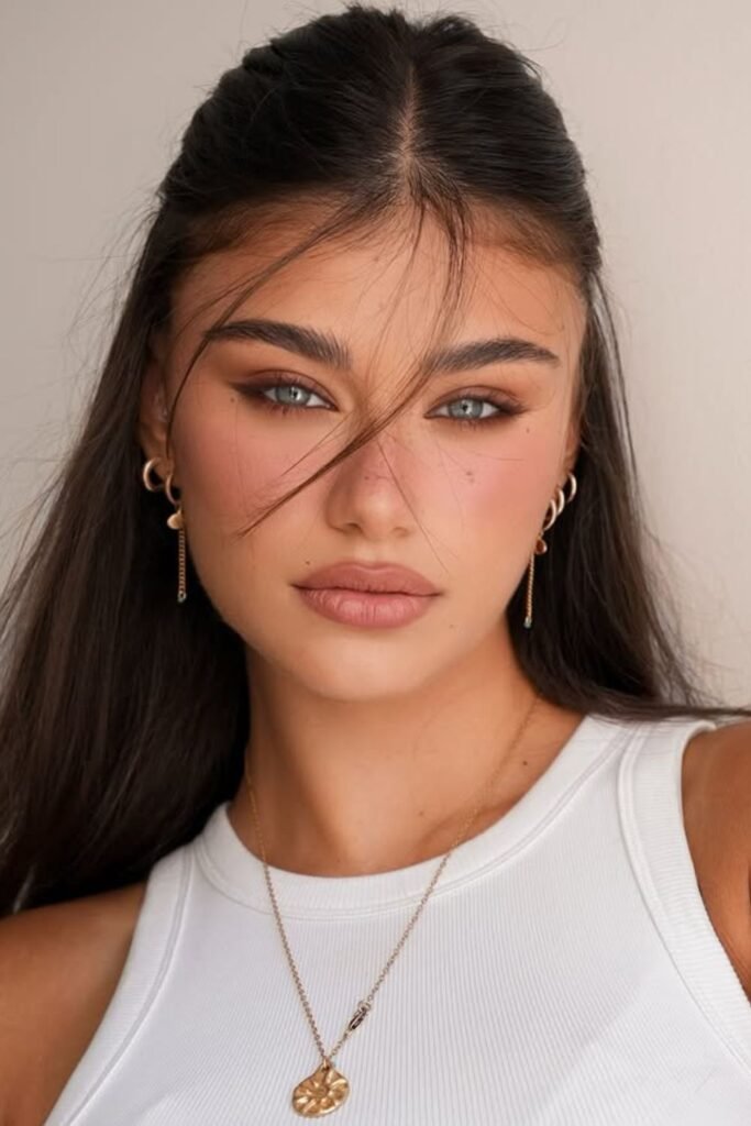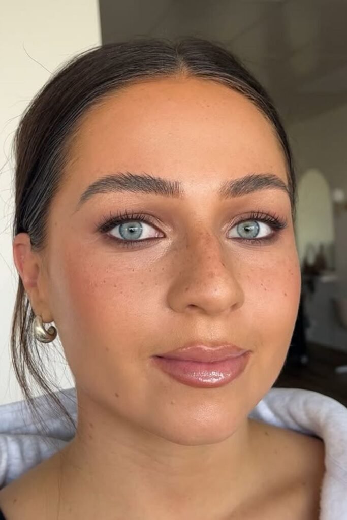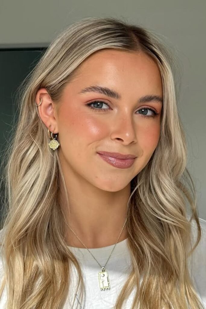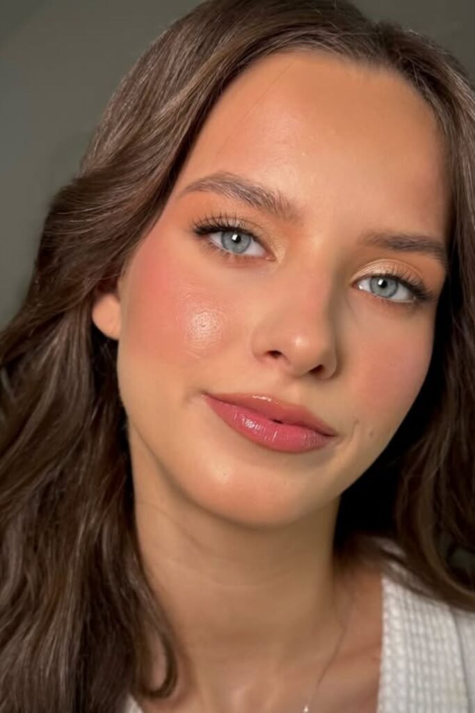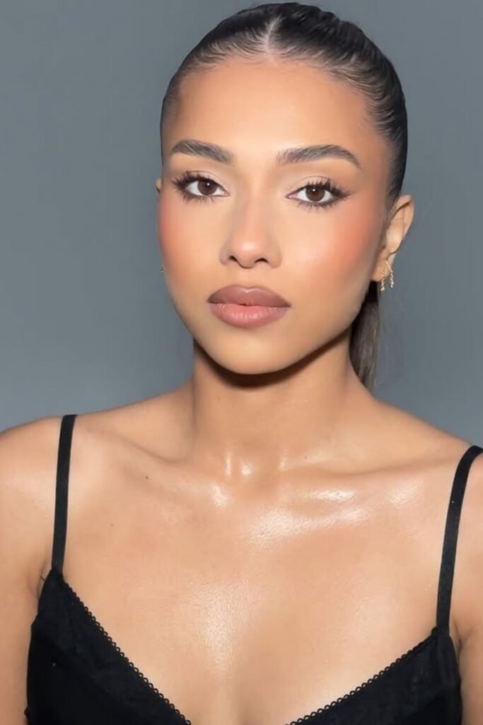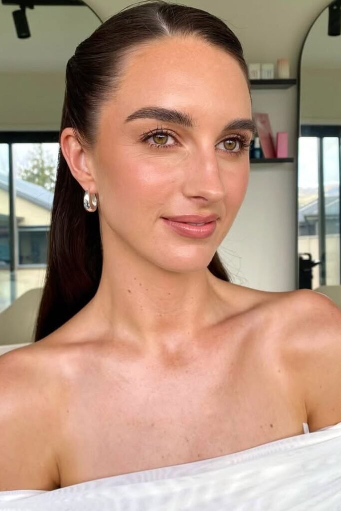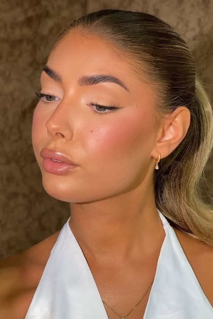 This clean look shines because it has sun-kissed warmth without a heavy contour.