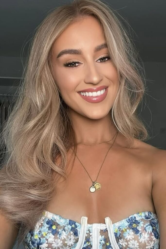 To get the same look, blend a glowing foundation with a drop of liquid highlighter and then add a warm bronzer behind the cheekbones to give them a little lift.