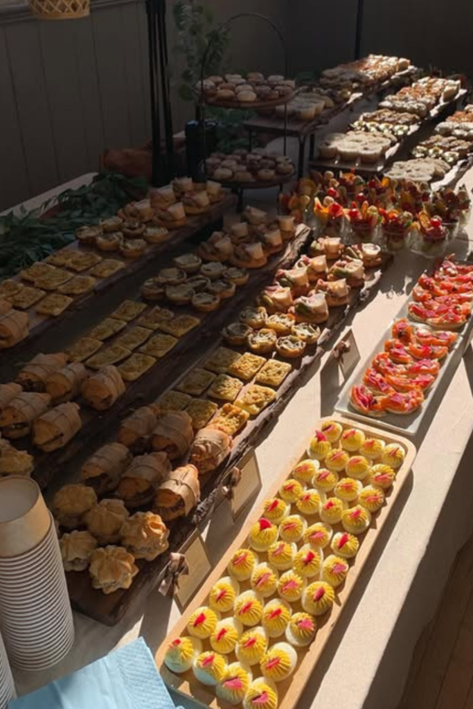 Croissants, mini tarts, sandwiches, and bite-sized desserts pair beautifully with a coffee bar and give guests options beyond sweets.