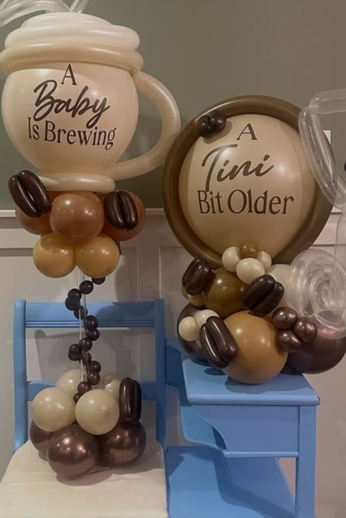 The soft blue balloons mixed with cream and caramel tones make this perfect for a baby boy shower without losing the coffee feel.