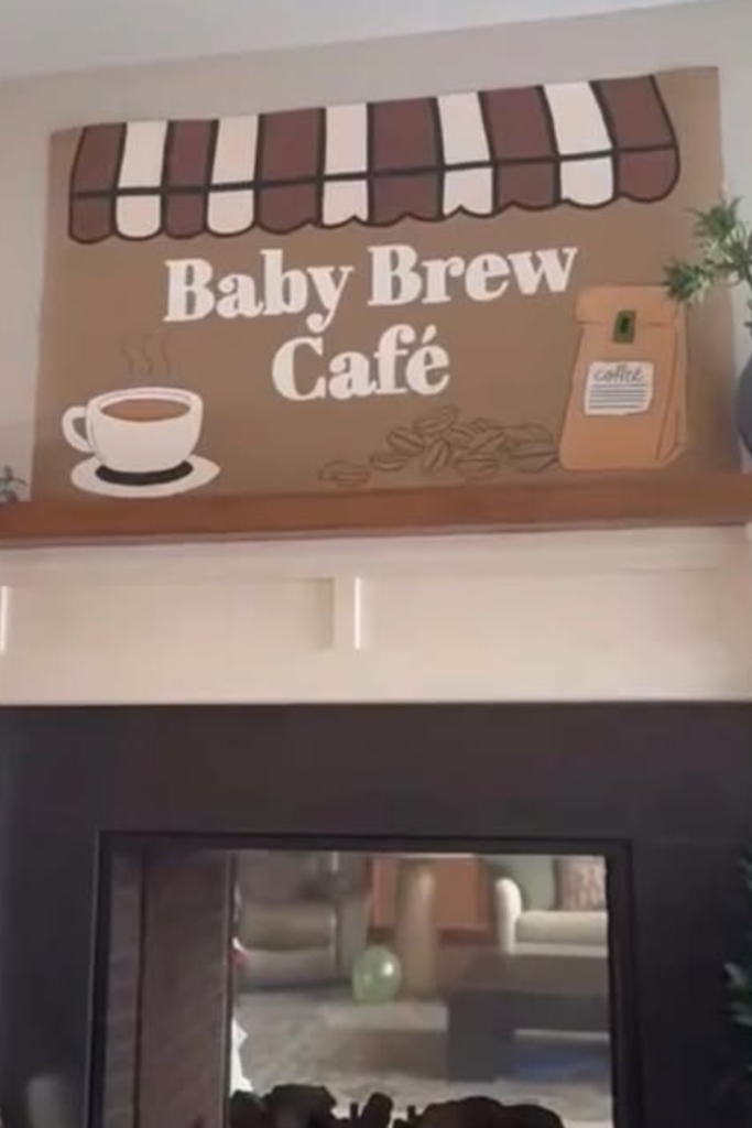 If you’re hosting at home, transform one wall into your own “Baby Brew Café.”