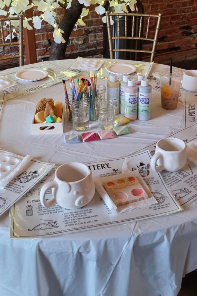 A paint-your-own mug station ties perfectly into the coffee theme and doubles as a take-home favor.
