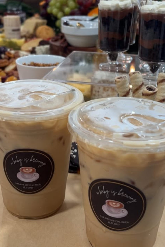 If you want your setup to feel interactive, list custom drink names inspired by the parents-to-be.