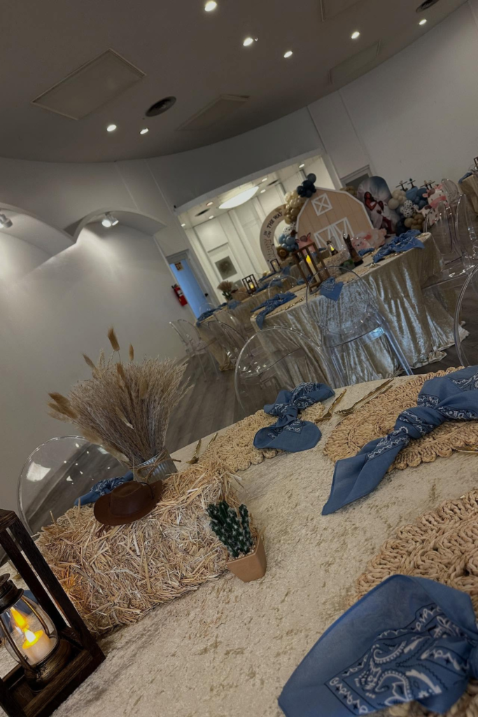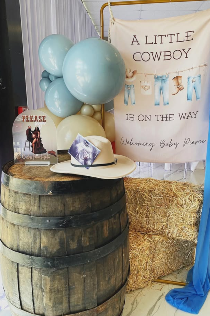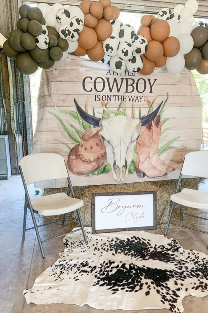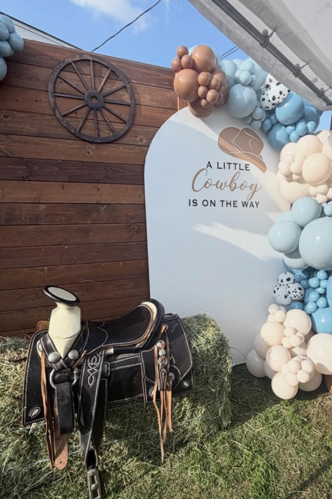 With a few thoughtful props and a cohesive color palette, you can create a beautiful cowboy-themed baby shower without overspending.