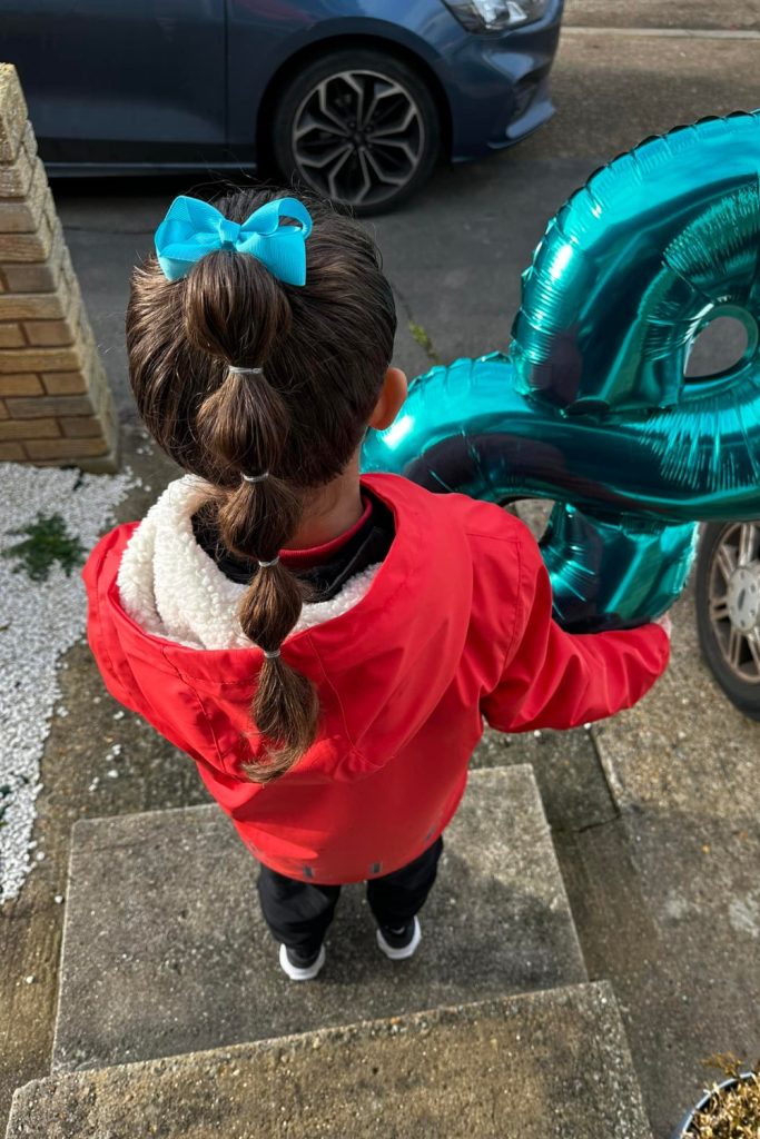Once all sections are braided, gather them at the back into a low ponytail or, for a playful touch, create a bubble braid.