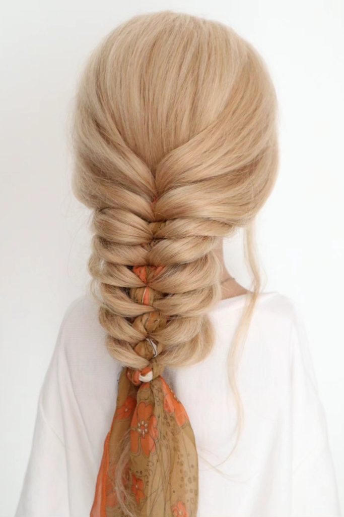 5. Fishtail Braid with Scarf
