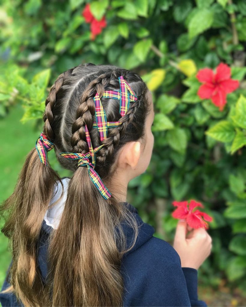 22. Ribbon-Wrapped Twin Braids