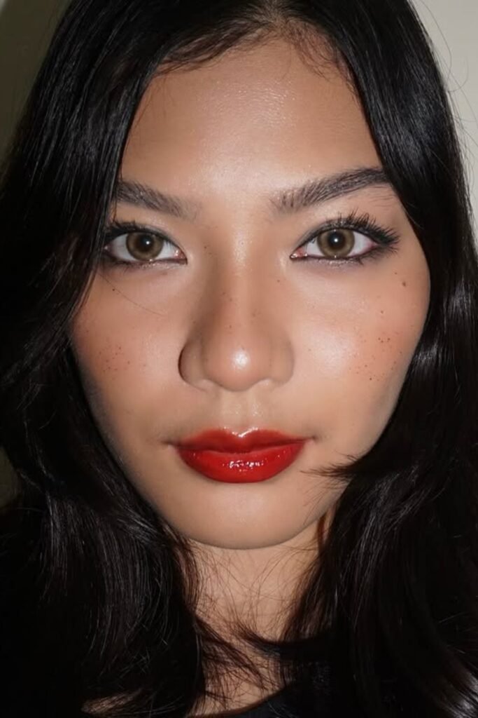 Glossy Red Lips with Minimal Eyes